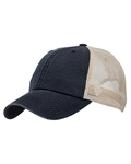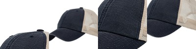 100% vintage washed cotton twill; 100% poly soft mesh; One size fits most; 6-panel; Unstructured; Low-profile; Adjustable snap-back closure; Top of the World headwear is transitioning to J America Headwear; Mixed branding may occur for a period of time;