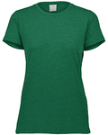 3.8 oz., 50% polyester/38% cotton/12% rayon tri-blend knit; Ladies' fit; Tear away label; Crewneck; Set-in sleeves with rolled forward shoulder seam;