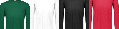 100% polyester wicking knit with True Hue Technology® that helps prevent dye migration; Moisture-wicking; Tear away label; Two-button placket; Raglan sleeves; Longer length;