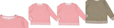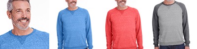 6.2 oz.; 55% polyester, 45% combed ringspun cotton Harborside Melange French Terry; Flatlock stitched self-fabric textured loop collar; Cotton twill back neck tape, back locker patch; Self-fabric textured loop elbow patches; Flatlock stitched self-fabric cuffs and bottom band; Flatlock stitched side seams; Side seam construction; CPSIA compliant tracking label; EasyTear label;