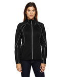 chin guard; center front reverse coil autolock zipper with reflective toggle; underarm vents; lower front concealed zippered pockets with reflective toggles; audio port access through inside lower left pocket; elasticized cuffs; unlined; adjustable shockcord at hem; reflective piping at shoulder yoke and center back yoke;