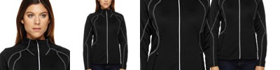 100% polyester brushed back fleece, 7.4 oz./yd2/250 gsm; Moisture wicking performance; chin guard; front reverse coil zipper with reflective asymmetric piping; chest pocket with reverse coil zipper and zipper garage; contrast coverstitch detailing; lower pockets with reverse coil zippers;