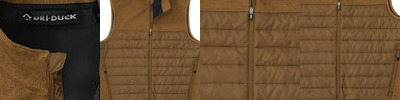 8.5 oz., 59% cotton/39% polyester/2% spandex DRI FLEX™ canvas with a water-resistant DWR finish; Brushed tricot inside upper body panel; Quilted nylon inside lower body panel with 3 oz. polyfill; Right-chest zippered pocket and secure hand pockets; Heavy-duty 2-way YKK metal zipper; Three-piece hood with scuba collar and inside, adjustable-toggle drawcord; Flex Action™ back, underarm gussets, and articulated elbows; Drop tail hem, storm cuffs; Reinforced stitching on high-stress seams; Relaxed fit;