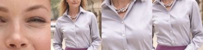 - Two pearlized buttons on an adjustable cuff with button-through sleeve placket