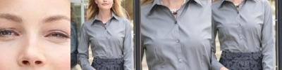 A pared-down corporate look with stylish ¾ sleeves and wrinkle-free wearbility.