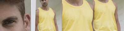 - Heather colorblock on upper chest, back and shoulders