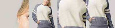 - Striped sleeve cuffs and bottom band