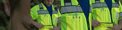 - Inside large lower patch pocket (vest folds into convenient storage pouch)