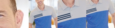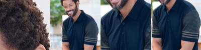 - Grey Three Heather/Black and True Blue Heather/Grey Three are 88/12 polyester/elastane