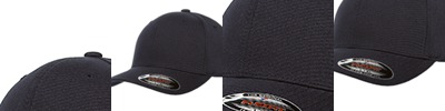 92% Polyester, 8% PU Spandex; Eight-row stitching on bill; Hard buckram backed front panels; Polyester/spandex mesh on side and back; The original Flexfit® sweatband retains shape; Black underbill ; Ermacurv® visor;