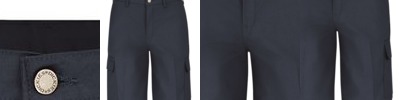- Two pleated cargo pockets, two back patch pockets with concealed snap closures