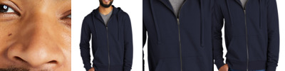 7.3 oz., 60% cotton, 40% polyester melange fleece; Self fabric scuba hood; Off-white drawcords; Set-on pouch pocket;