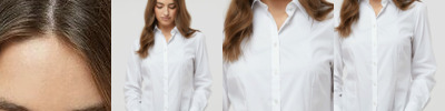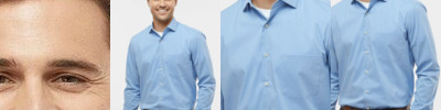 - Two-piece, topstitched, lay-flat collar