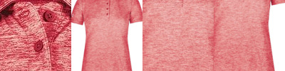 - Ribbed bottom band and sleeve cuff with raw edge seams