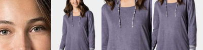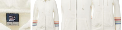 - Yarn-dyed striped back neck tape, drawcord and cuffs