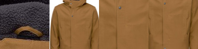 - Reinforced fabric overlayed on shoulders, back yoke, front placket, chest pocket, and hand pockets