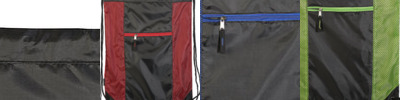 - Made of 600D Polyester with PVC backing and mesh-patterned color accent panels with Aluminum foil insulated interior