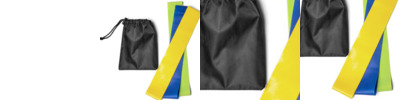 - Drawstring pouch containing three resistance bands