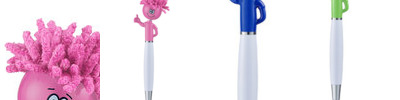 - Click-action ballpoint pen with mop-top hair, and smiley face character making "thumbs up" sign