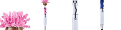- Click-action ballpoint pen with smiley face, stethoscope-shaped clip and mop-top hair