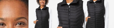 - Center front reverse coil zipper with semi-auto lock slider and toggle
