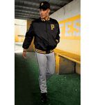 9 ounce 60% cotton/40% polyester athletic fleece * Woven label * Rib-knit waistband and bottom cuffs * Side seam pockets * Back patch pocket * Tapered leg