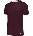 4.1 ounce 100% polyester interlock * Dri-Power(r) Moisture Wicking Technology * Heat sealed label * "R RUSSELL" on left sleeve end * Self-fabric crew neck collar * Garment protects against the sun with 30+ UPF * Set-in sleeves