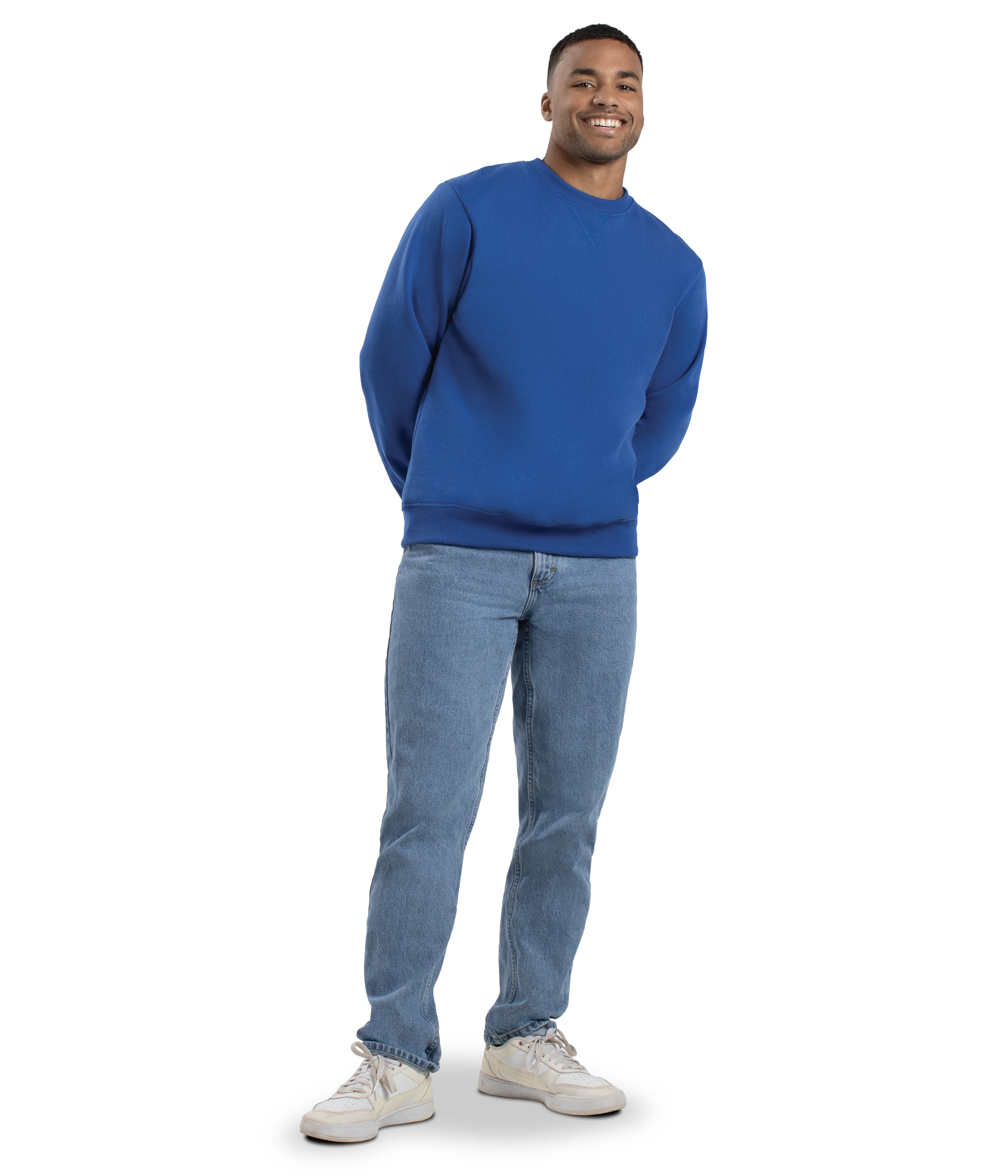 * 6.8-ounce, 50% cotton/50% polyester * Tear away label * Crew neck with stitching at neckline * Set-in sleeves * Rib-knit cuffs and bottom band