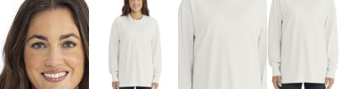 * Eco-Revive(r) product featuring 50% recycled polyester/50% polyester * Garment protects against the sun with 50+ UPF * Wicks moisture * Ladies' fit * Tag-free label * Crew neck * Raglan sleeves