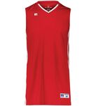 Color side is 100% polyester propelit micromesh wicking knit * White side is 100% polyester wicking knit * Wicks Moisture * Ladies' fit * Outside locker label * V-neck collar * Contrast color inserts and piping * Fully reversible * Each layer hemmed separately for easy embellishment * Designed to be NFHS compliant