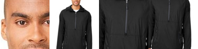 - Right-chest and lower front zippered pocket with contrast teeth and rubber toggle