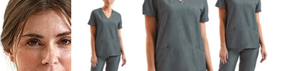 - V-neck style with left chest pocket with combined mobile and pen pocket