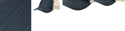- Fabric: 100% cotton twill front panels, 100% polyester mesh mid and back panels
