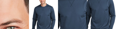 This budget-friendly, active-inspired pullover performs with moisture wicking and snag resistance. Easy to layer, the closed-hole pinpoint mesh adds subtle texture, while front and back seams streamline the look.