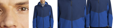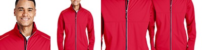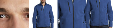 100% polyester, all season soft shell ; Wind resistant ; Water resistant, DWR finish ; Breathable ; 4-way stretch ; Media port ; Adjustable three-piece hood designed to contour for a comfortable fit; Zippered chest and hand pockets; Adjustable cuff ; Adjustable hem; Auto lock zipper with easy grab puller; Media port;