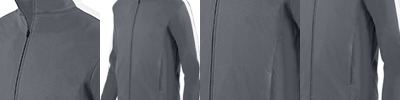 Heavyweight 100% polyester matte brushed tricot ; Heat sealed label ; Center front zipper; Contrast color inserts on collar and shoulder ; Set-in sleeves ; Front seam pockets ; Self-fabric cuffs ;