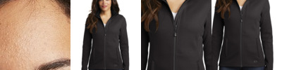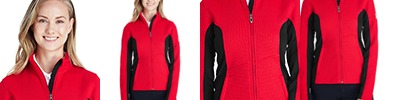 100% polyester sweater knit bonded to fleece; Custom Spyder knit jacquard; Brushed microdenier tricot inner collar; Princess seams for a feminine silhouette; Reverse coil center front zipper; Zippered handwarmer pockets inset into princess seams; Modern fit;