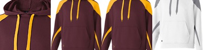 9 oz., 60% cotton, 40% polyester athletic fleece; Woven label; Hood with drawcord on Adult sizes only; Contrast color inserts; Raglan sleeves; Front pouch pocket; Rib-knit cuffs and bottom band;
