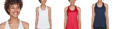 Wicks moisture away from the body; Girls' fit; Heat-seal label; Self-fabric binding at neck and armholes; Double-needle hemmed bottom;