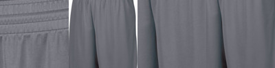 Two layers of 100% polyester wicking knit ; Wicks moisture away from the body ; Full cut ; Fully reversible ; Covered elastic waistband with inside drawcord ; Each layer hemmed separately for embellishment ; 9-inch inseam ;