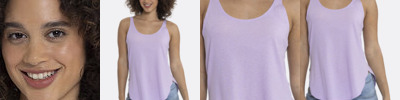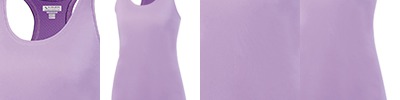 100% polyester wicking smooth knit body ; 100% polyester lightweight wicking mesh back ; Wicks moisture away from the body ; Ladies fit; Heat-seal label; Self-fabric banded armhome and collar ; Racerback styling ;